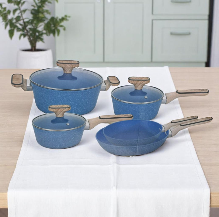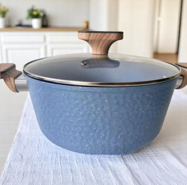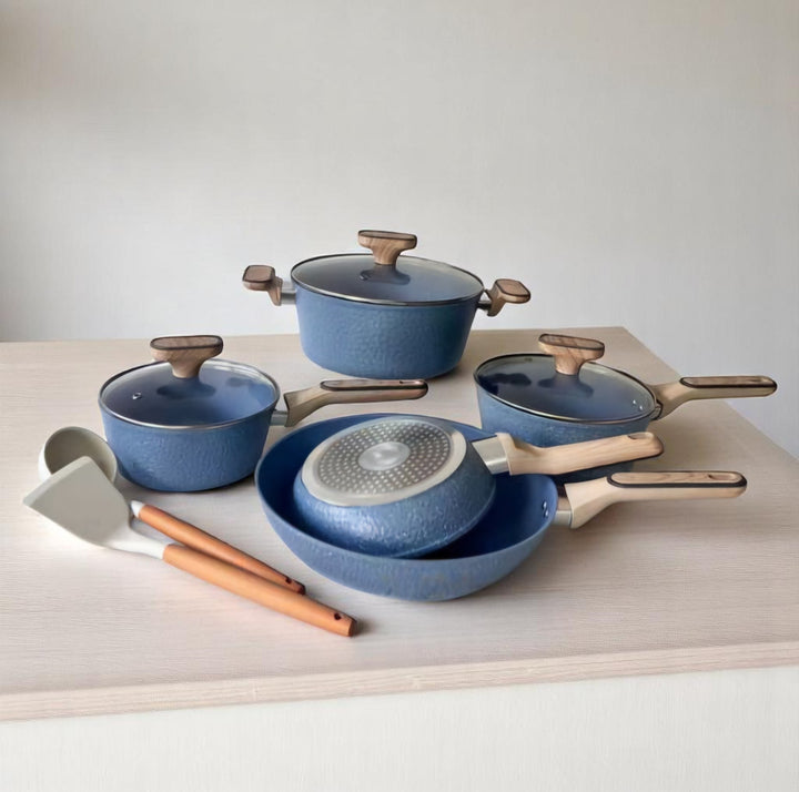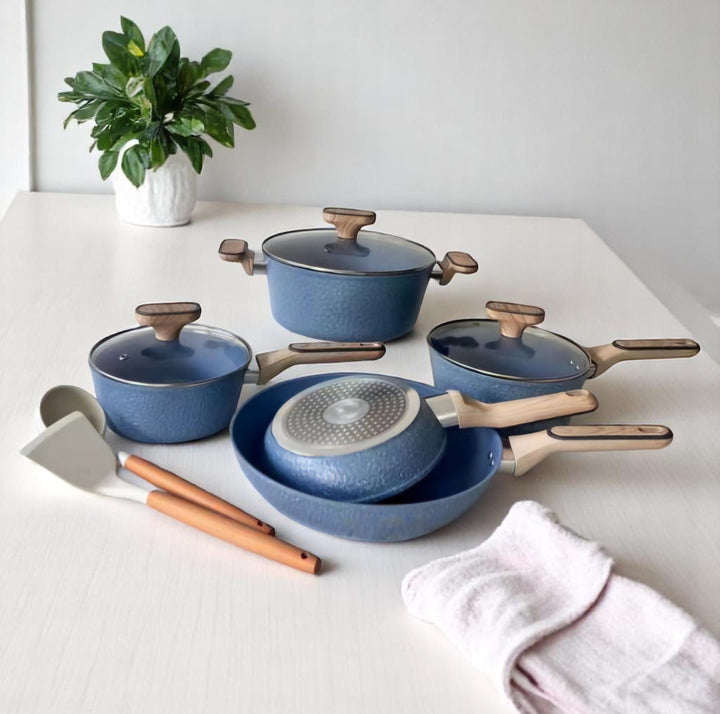 Bring style and performance to your kitchen with this elegant 10-piece Blue Granite Cookware Set, designed for everyday cooking and effortless cleanup.