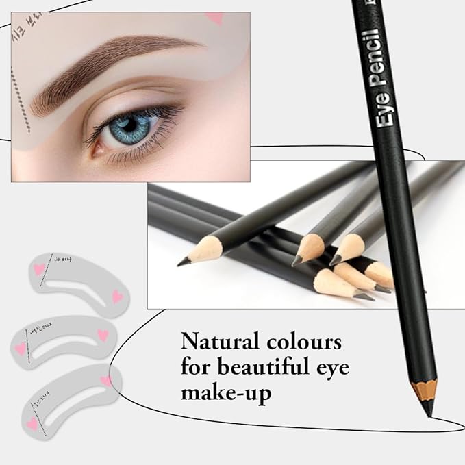 Complete eyebrow styling kit featuring 10 pieces including brown or/and black eyebrow pencils, and stencils. These waterproof, smudge-proof makeup tools deliver professional-quality results with minimal effort. The long-lasting formula ensures your brows remain perfectly defined throughout the day, while the precision applicators allow for expert-level shaping and definition.