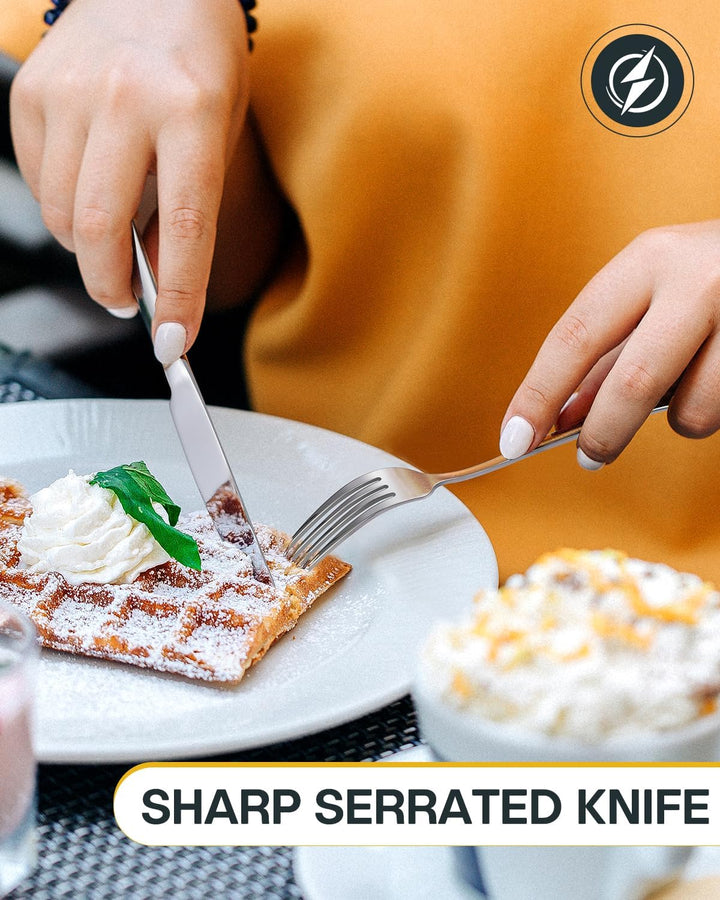 - Multi Purpose: This stainless steel knife and fork set is suitable for daily life, hotels, restaurants, gatherings, camping and picnics. At the same time, it is also a great gift for housewarming, weddings, Thanksgiving, Christmas. It can perfectly match your table decoration, showing your extraordinary taste and lifestyle.