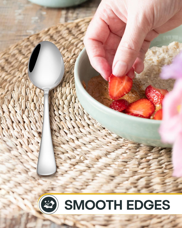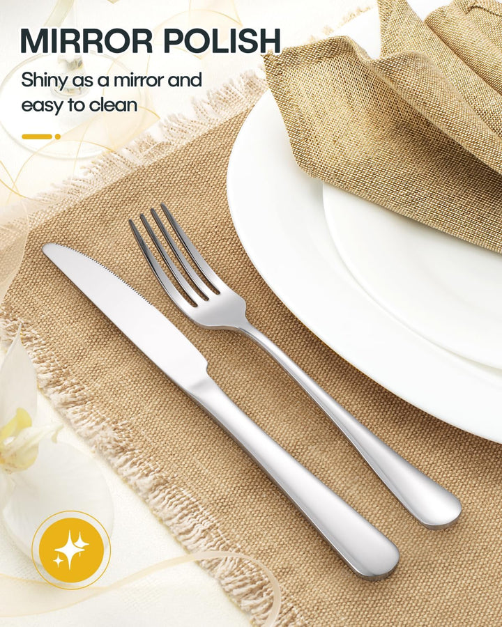 - Excellent Design: The flatware set adopts a simple design, elegant appearance, moderate curvature, and easy to grasp. The unique appearance and mirror polishing keep the surface of the cutlery shiny. When dining, it reflects the original color of the food like a mirror, instantly improving the grade of your dining table.