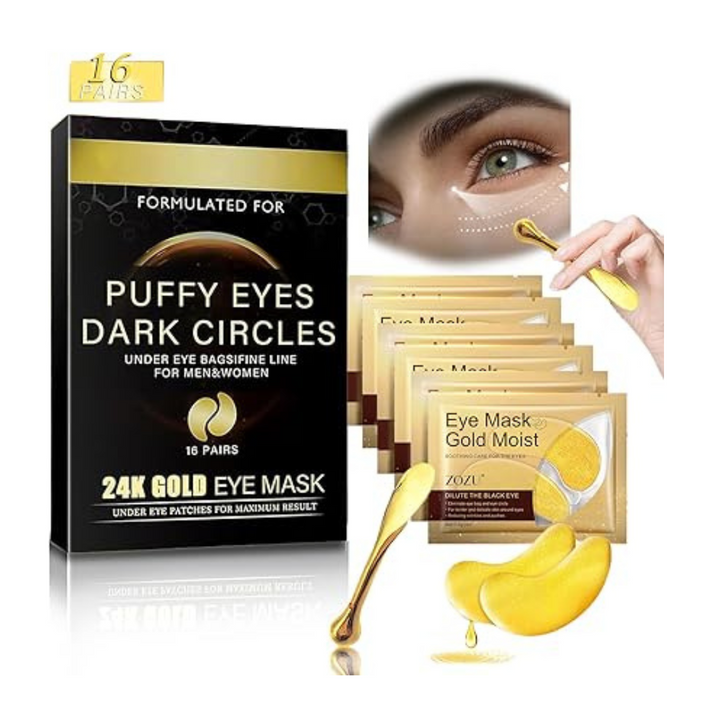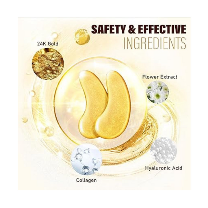 - 【24k Gold Eye Patches - Natural Ingredients】: Gold Eye Mask Skin Care is rich in safe natural ingredients that promote blood circulation, enhance cell activity and repair damaged skin. The collagen in them stimulates skin cell regeneration, firms the skin and reduces wrinkles, eye bags, fine lines and crow's feet. Add these gold eye patches to your daily self-care routine and keep your eyes looking their best with confidence.