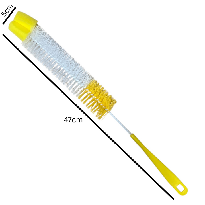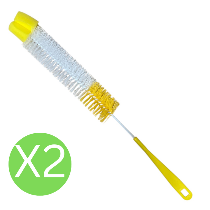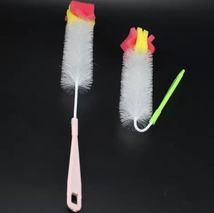 This set features two long, flexible cup cleaning brushes combining sponge and bristle heads for versatile cleaning. Designed for baby bottles, flasks, and various containers, the brushes’ foldable metal and plastic handles allow easy access to narrow and curved areas. Their dual-action sponge and bristle design ensures effective removal of residue while protecting delicate surfaces, making them essential tools for thorough and hygienic cleaning.