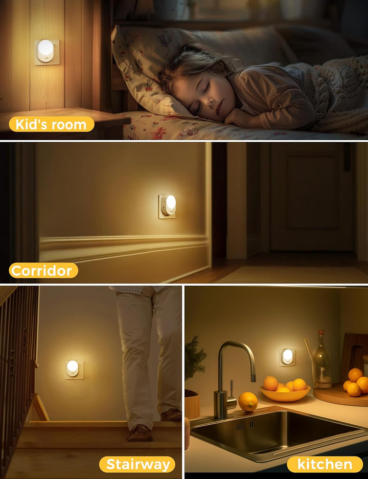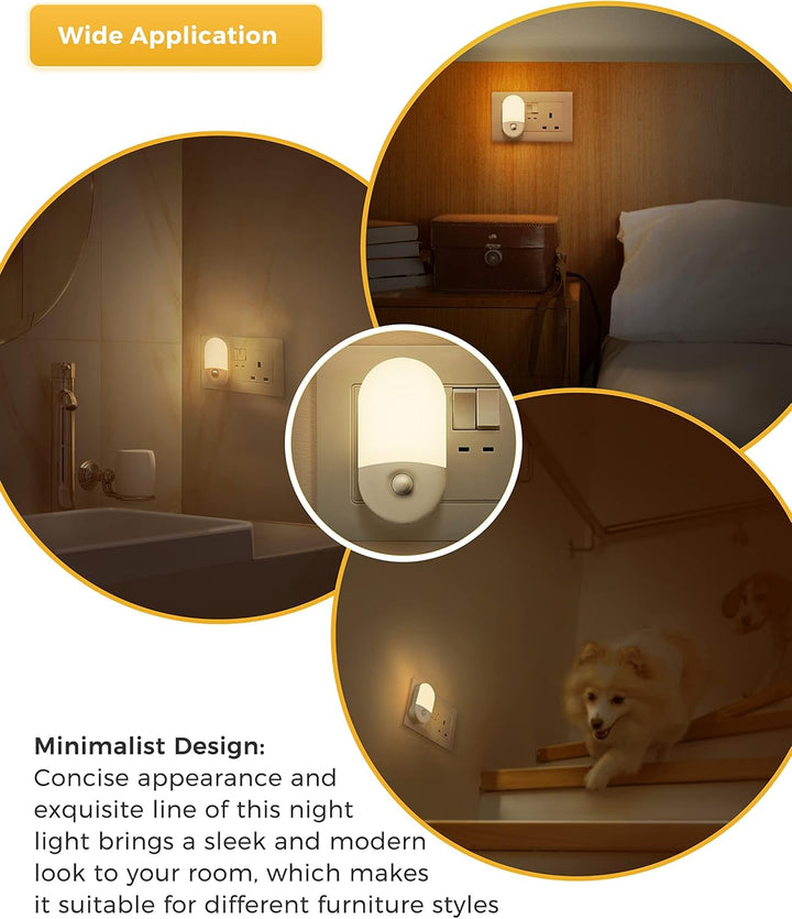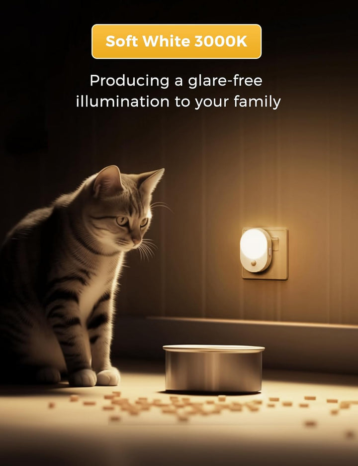 - Enhance your Home: This plug in motion sensor night light provide 3000K soft white lighting and you can move around your house without turning on the main lights at night. Glare-free and not dazzling.