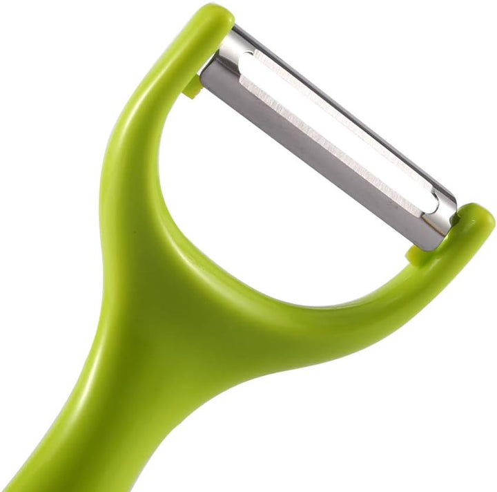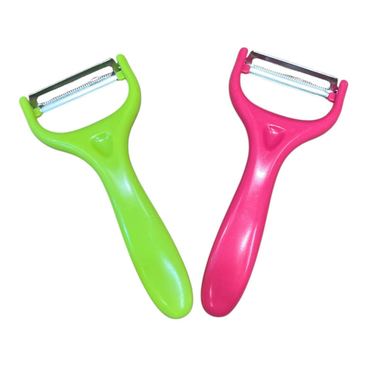 Enhance your kitchen efficiency with this set of 2 premium vegetable peelers in pink and green. Designed for multi-function use, they effortlessly peel vegetables, melons, fruits, and potatoes with precision. Their ergonomic Y-shaped design ensures secure grip and easy control, reducing hand fatigue during prolonged use. Crafted for durability and sharpness, these peelers deliver professional-level performance for everyday cooking tasks.