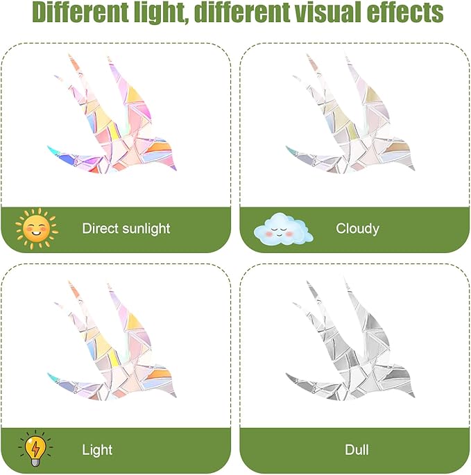 - Rainbow Prism Design: Our window clings feature swallows pattern, with vibrant rainbow prism design that not only adds a touch of color to your windows but also creates an eye-catching visual display.