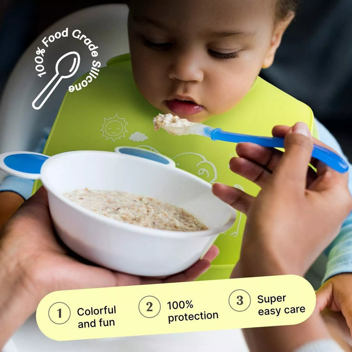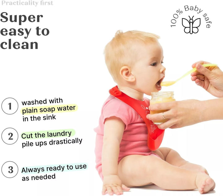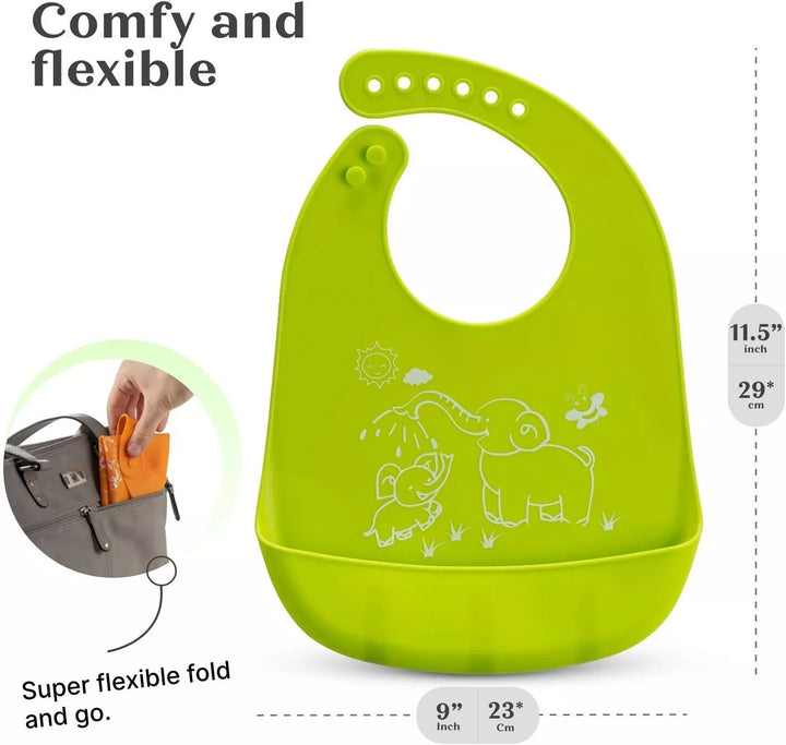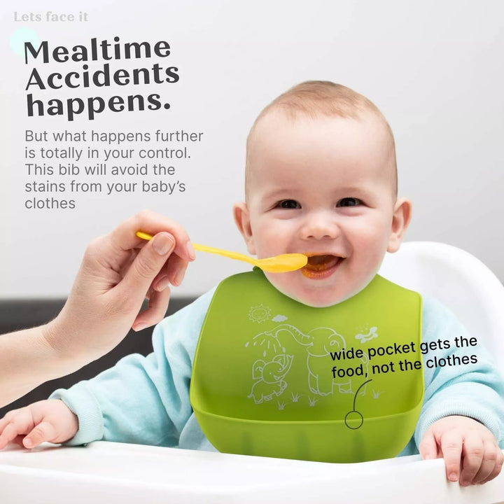 These 3 silicone bibs are waterproof and easy to clean, making feeding time a breeze. With a food catcher, messes are easily contained, keeping your baby's clothes clean. Made from high-quality silicone, these bibs are durable and perfect for messy eaters.