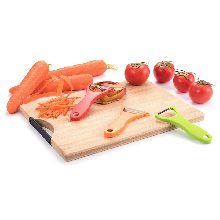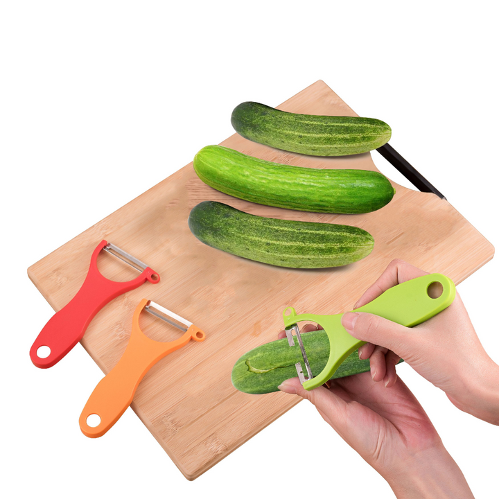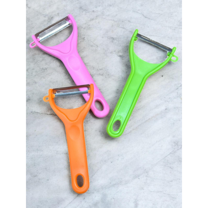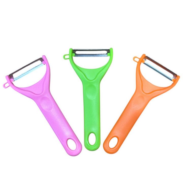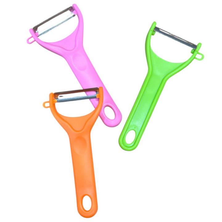Enhance your kitchen efficiency with this set of 3 ultra-sharp stainless steel peelers. Designed for precision and smooth peeling, they effortlessly handle vegetables and fruits like potatoes, cucumbers, and carrots. Their durable blades ensure consistent performance, making food preparation faster and more precise for professional-quality results.