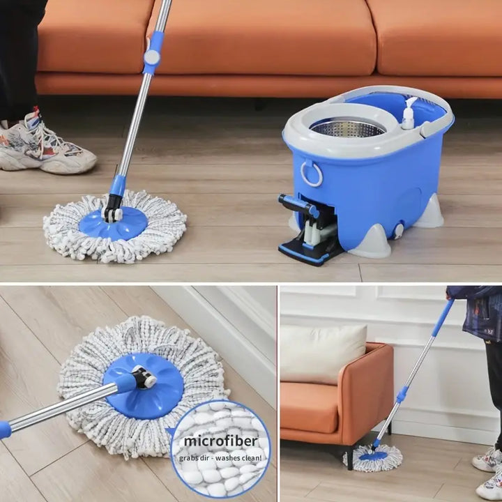Keep your floors sparkling clean with the 360 Spin Complete Mop Set. This innovative set includes a foot pedal bucket and 2 free mop heads for efficient cleaning. With a 360-degree spin, this set makes mopping easy and effortless. Say goodbye to back pain and hello to a clean home with this complete mop set.