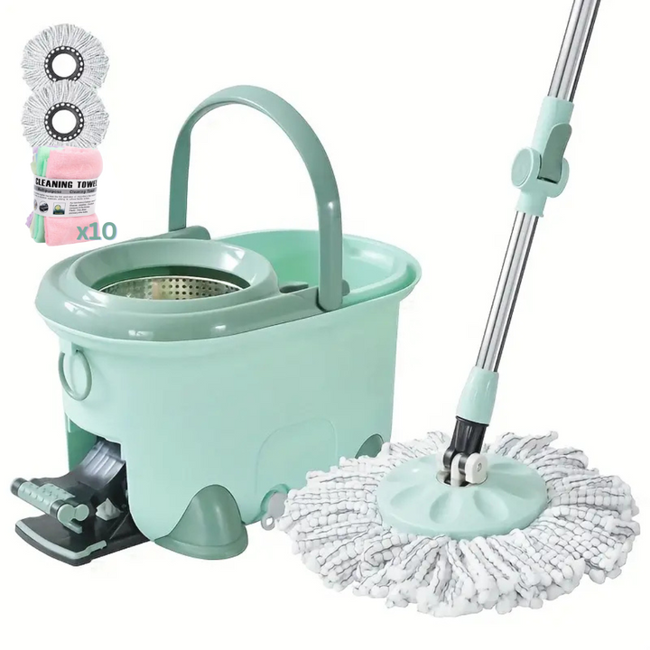 - What's included: Bucket, Mop, 2 Heads, 10 Pcs Cleaning Cloth
