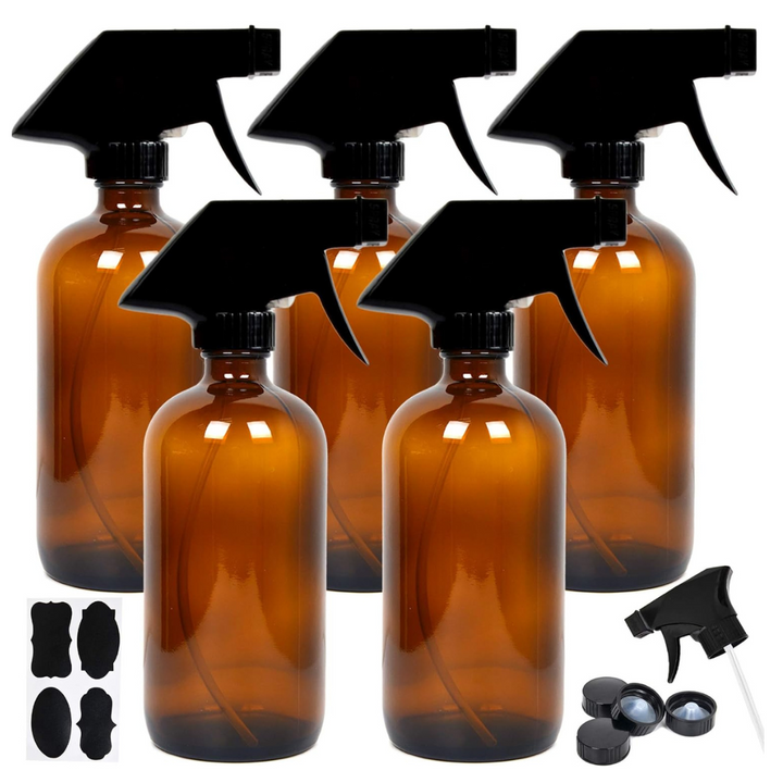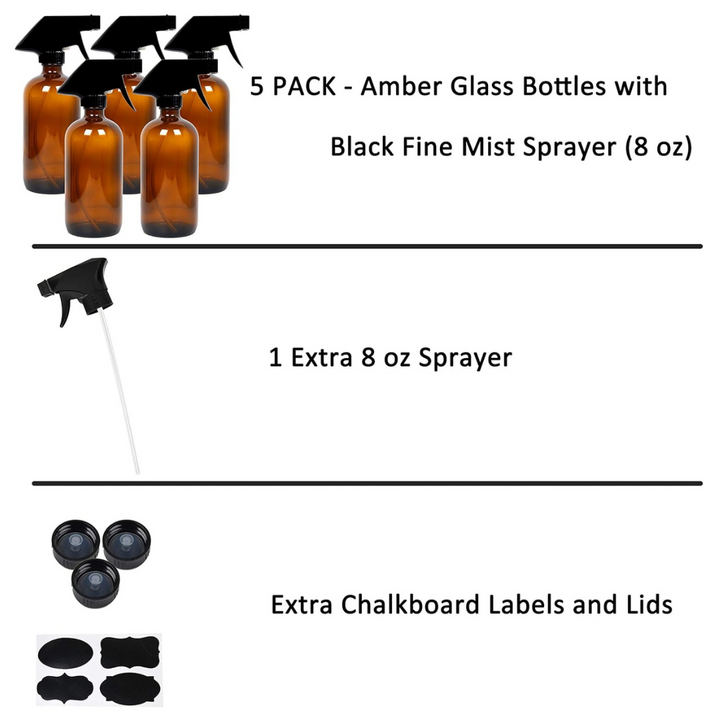 - GREAT VALUE Glass Spray Bottles - 5 Pack Amber Glass Spray Bottles 250ml, EXTRA Caps, Sprayers, Chalk Labels.