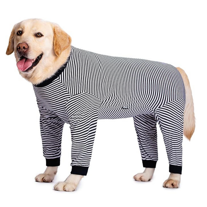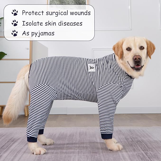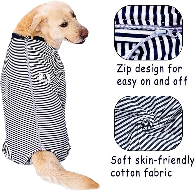 - Full Coverage: Long sleeves to protect your dog's extremities. The full body dog onesie protects injured areas and post-surgical wounds. Soft cotton fabric keeps your dog cosy and relieves anxiety.