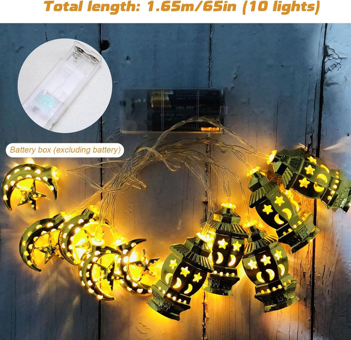 - LED Light String for Eid Mubarak:Celebrate the joyous occasion of Eid ul-Fitr with this exquisite iron art LED light string, designed specifically to brighten up your celebrations. Featuring a length of 1.65 meters with 10 warm white LED bulbs, it adds a festive touch to any setting.
