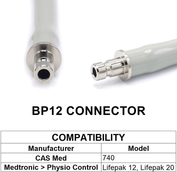 This 8.2-foot single tube blood pressure hose is designed for compatibility with Medtronic-Physio devices, featuring BP12 and BP15 connectors. Suitable for both adult and pediatric cuffs, it ensures reliable and accurate non-invasive blood pressure (NIBP) monitoring. Its durable construction supports consistent performance in clinical settings, making it an essential component for healthcare professionals requiring precise patient monitoring.