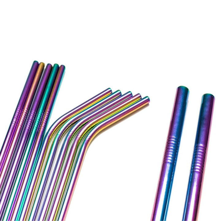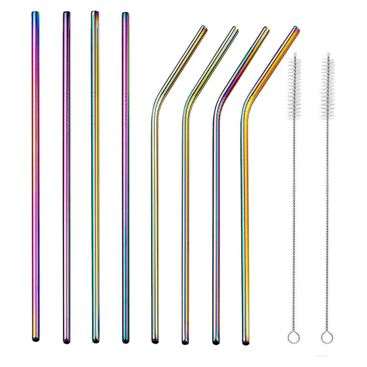 - This reusable straw set includes everything you need for a complete and comfortable drinking experience. You’ll receive 8 metal straws (4 straight and 4 curved), an ergonomic cleaning brush