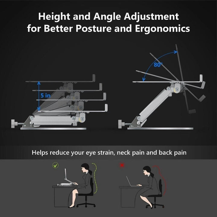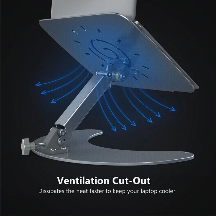 ROBUST DESIGN: aluminium alloy construction makes this laptop stand resist rust and corrosion and withstand repeated use; fits most laptop, notebook and tablet between 13 - 17 in and holds up to 11 lbs (5 kg). - KEEPS YOUR LAPTOP COOL: aluminum alloy platform absorbs and distributes heat away from the laptop while the cut-out on it improves airflow around the laptop to keep it cooler; help prevent your laptop from slower performance, malfunctions, and system crashes caused by overheating.