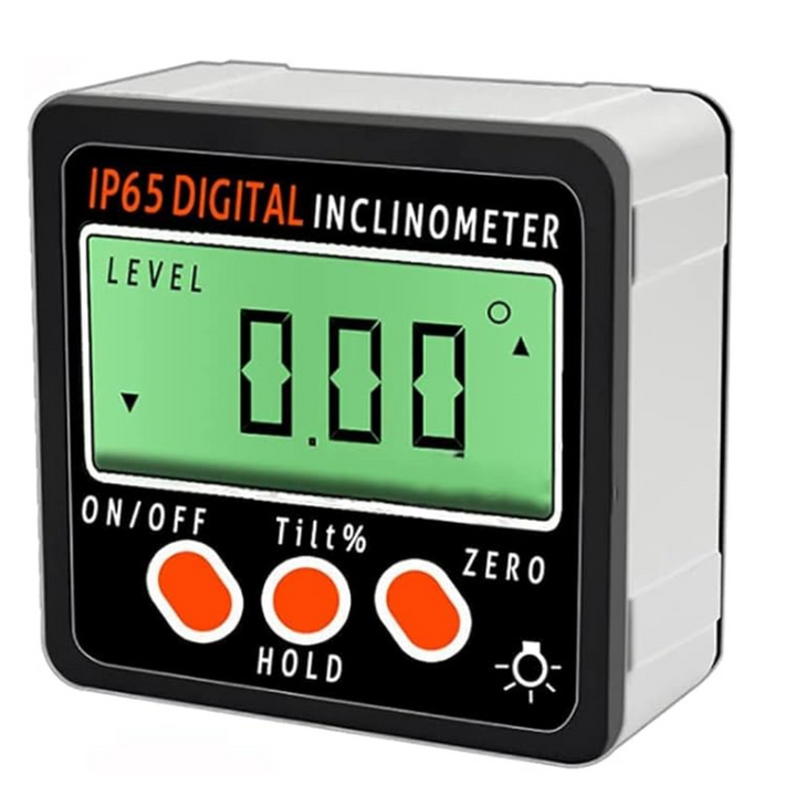 The ANCLLO Digital Level Angle Finder offers precise angle measurement from 0 to 360 degrees, ideal for professional use. Its IP65 waterproof rating ensures durability in challenging environments, while the V-groove magnetic base provides stable attachment to pipes and surfaces for hands-free operation. This inclinometer combines accuracy with robust design, making it a reliable tool for carpentry, metalwork, and engineering tasks requiring exact angle readings.