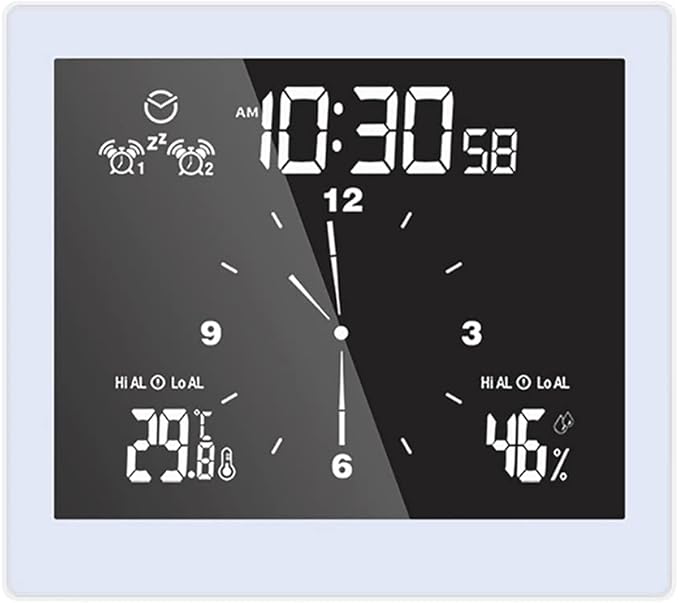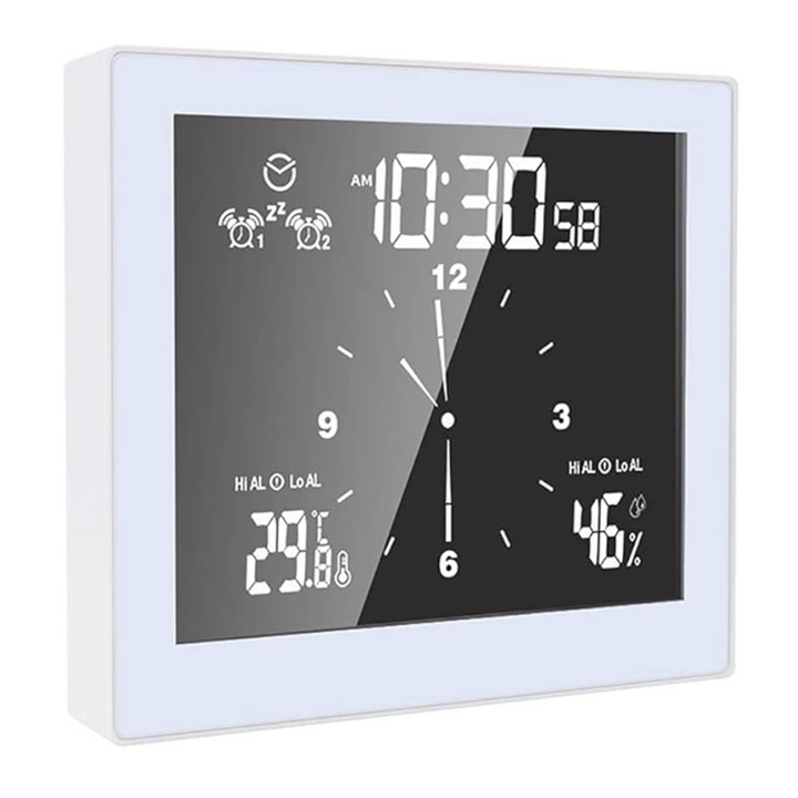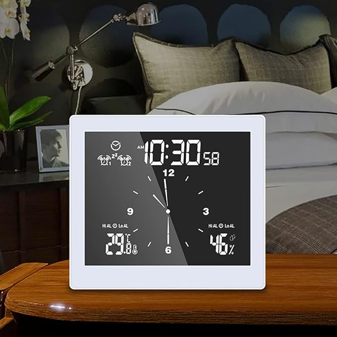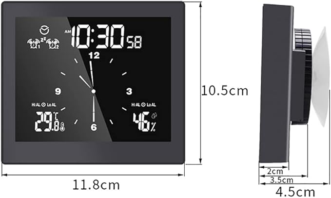The ANCLLO Touch Screen Clock combines precise timekeeping with multifunctional features, including temperature and humidity measurement. Powered by batteries and equipped with a suction cup design, it easily attaches to smooth surfaces, making it ideal for office or home use. Its intuitive touch screen ensures effortless operation, while the compact white design blends seamlessly into any environment. This clock offers reliable timing and environmental monitoring in one sleek, user-friendly device.