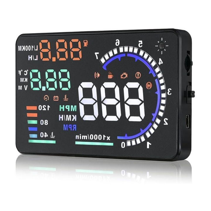 Monitor your vehicle's vital statistics without taking your eyes off the road with the Arestech A8 OBD2 Windshield HUD. This 5.5-inch head-up display projects critical data including RPM, speed, fuel consumption, and temperature directly onto your windshield. The integrated speeding warning system enhances driving safety by alerting you when exceeding speed limits. Compatible with most vehicles featuring an OBD2 port for simple plug-and-play installation.