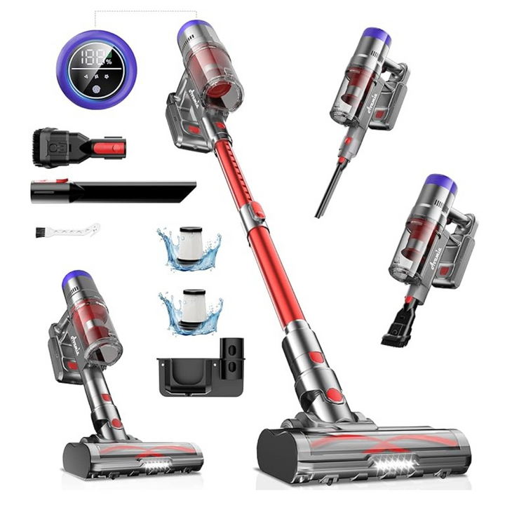 The Avamia Cordless Vacuum Cleaner offers up to 55 minutes of uninterrupted cleaning with its powerful battery. Designed as a versatile 6-in-1 stick vacuum, it features an anti-tangle brush ideal for removing pet hair from hard floors and carpets. The integrated LED screen provides real-time status updates, enhancing user control. Lightweight and cordless, this vacuum ensures efficient, hassle-free cleaning across various surfaces.