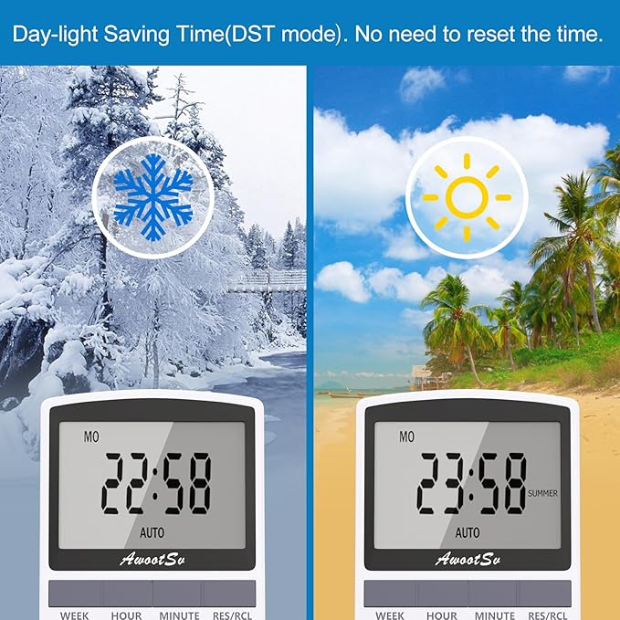 - User Friendly Design: Large screen for clearer view of digits and numbers; built-in rechargeable battery to memorize your programs during power outages; completely silent and ideal for home use.Flexible switch between standard and summer time, streamline your daily life and automate your home.