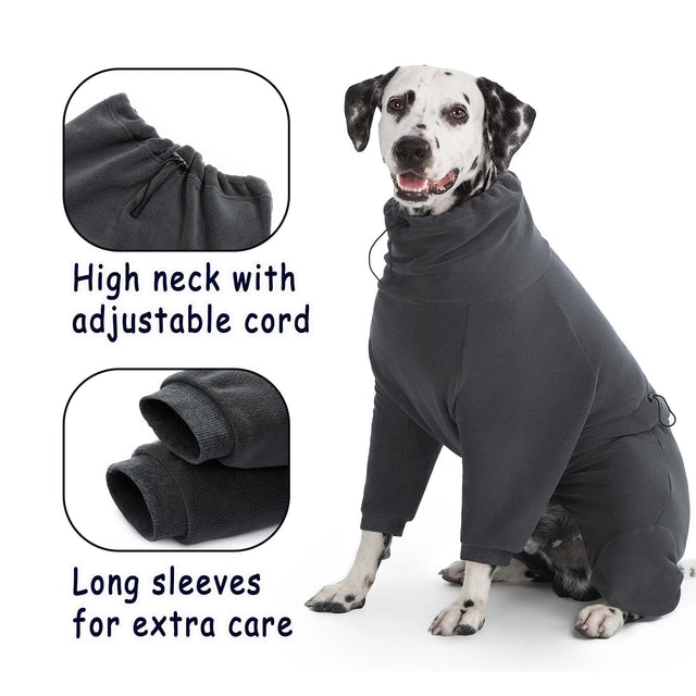 - Full-Body Warmth for Dogs : Axcimond fleece dog coat with legs offers complete coverage for your pet's body, keeping them warm and protected during the coldest months. The high collar design adds extra warmth around your dog's neck, ensuring they stay cozy and comfortable all day long.
