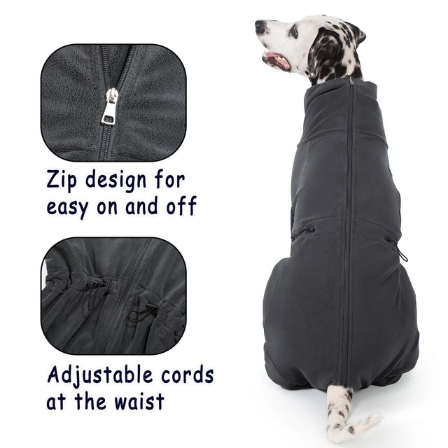 - Easy Zip-Up Design : The back zipper of our dog coat makes it easy to put on and take off, while the inner flap protects your dog's fur from getting caught. This versatile dog fleece jumper can be used as dog pajamas, to prevent shedding, or as a windproof layer for outdoor adventures.
