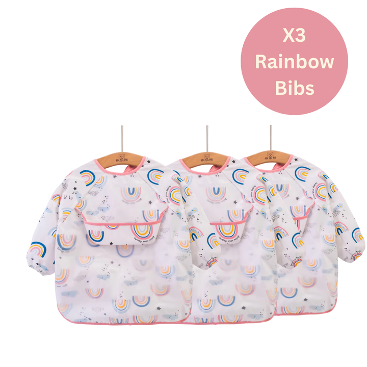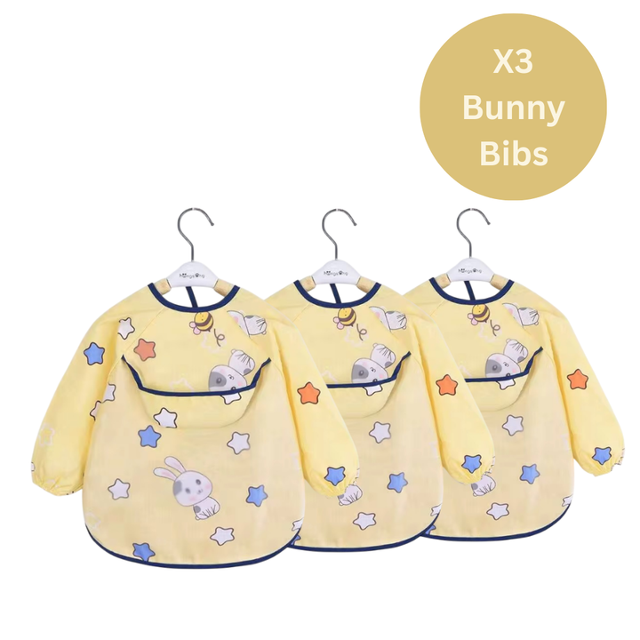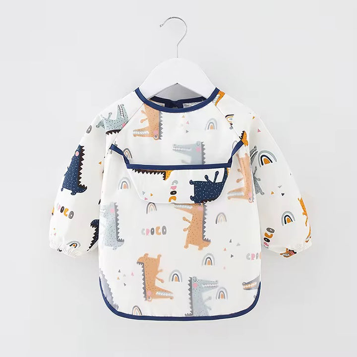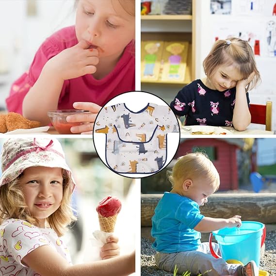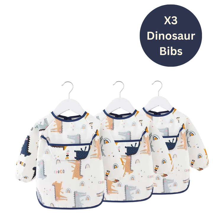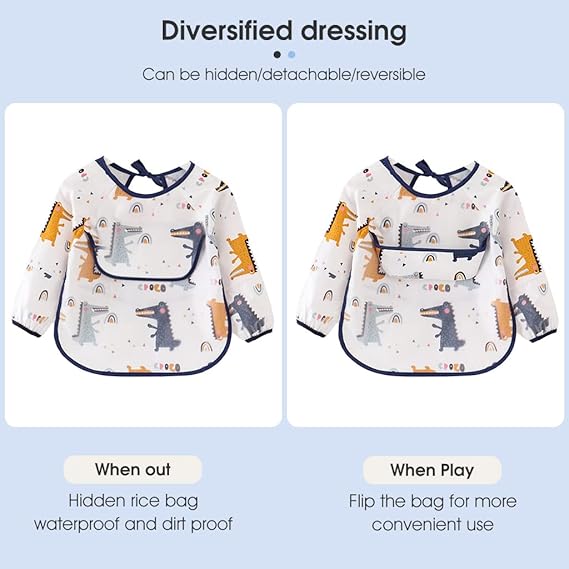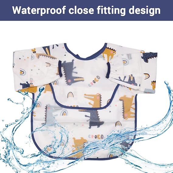 Designed for babies aged 6 to 24 months, this pack of three long-sleeved bibs offers full coverage to keep your child clean during meals and play. Made from waterproof material, these shirt-style bibs protect clothing from spills and stains effectively. Each bib features a convenient front pocket to catch crumbs and liquids, reducing mess and simplifying cleanup. Easy to wear and comfortable, they combine practicality with thoughtful design to support both parents and caregivers in daily routines.