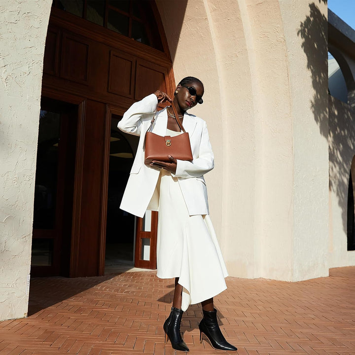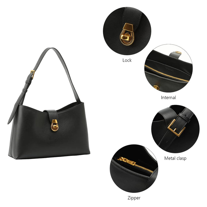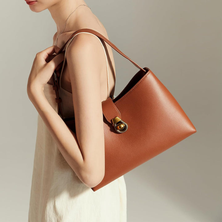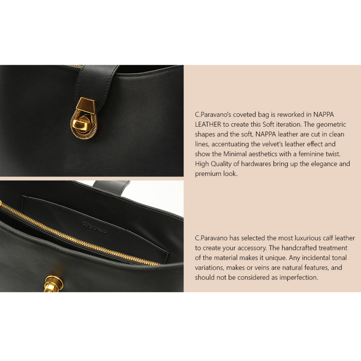 C.Paravano Black Brown Women Tote Bag, Nappa Leather Shoulder Handbag