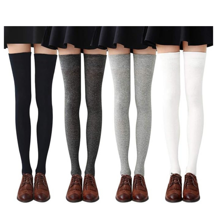 Chalier offers a set of 4 pairs of women's knee-high socks designed for comfort and style. These stretchy, striped thigh-high stockings provide a secure fit that stays in place throughout the day. Ideal for layering or adding a fashionable touch to any outfit, they combine durability with a soft texture suitable for extended wear. Perfect for girls and women seeking versatile legwear that balances functionality with a trendy look.