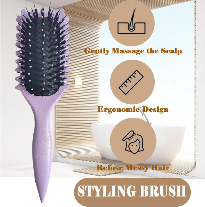 - Effortlessly Define and Shape Curls: Our Curl Defining Brush features strategically placed bristles and an ergonomic handle to effortlessly define, shape, and detangle curls. The special teeth design evenly divides hair, making styling a breeze.