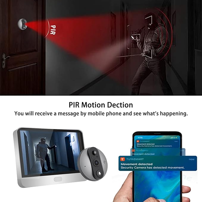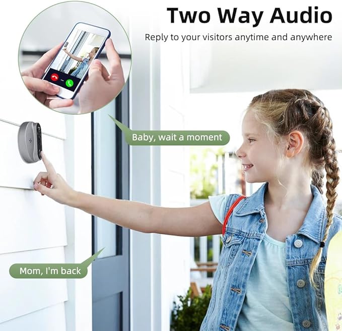 The DFCat Battery Powered Digital Video Doorbell is designed specifically for apartment doors with peephole viewers. Featuring a wireless 1080P camera, it delivers clear video quality day and night with advanced night vision. Its PIR motion detection enhances security by alerting you to movement near your door. Easy to install and battery powered, this doorbell offers a reliable and discreet solution for monitoring visitors without complex wiring. Ideal for enhancing apartment security with professional-grade technology.
