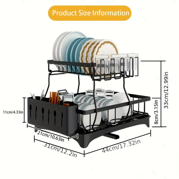 Maximize your kitchen efficiency with this large 2-tier dish rack crafted from durable carbon steel. Its detachable design includes a convenient drainboard, allowing water to flow directly into the sink, keeping your countertop dry. Spacious enough to organize dishes, cups, and cutlery separately, it offers practical storage while maintaining a sleek, professional look. Ideal for those seeking a robust and efficient solution to streamline dish drying and organization.