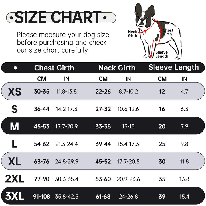 - 【Sizes】To choose the most suitable dog body suit after surgery, please measure the size of your dog and compare it to the size chart before ordering the recovery sleeves, according to the actual leg of the dog, select the size.