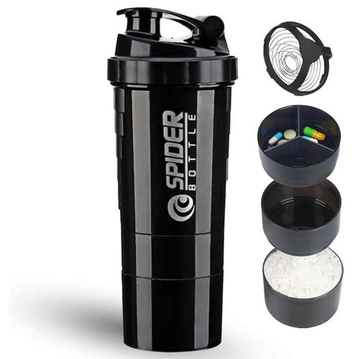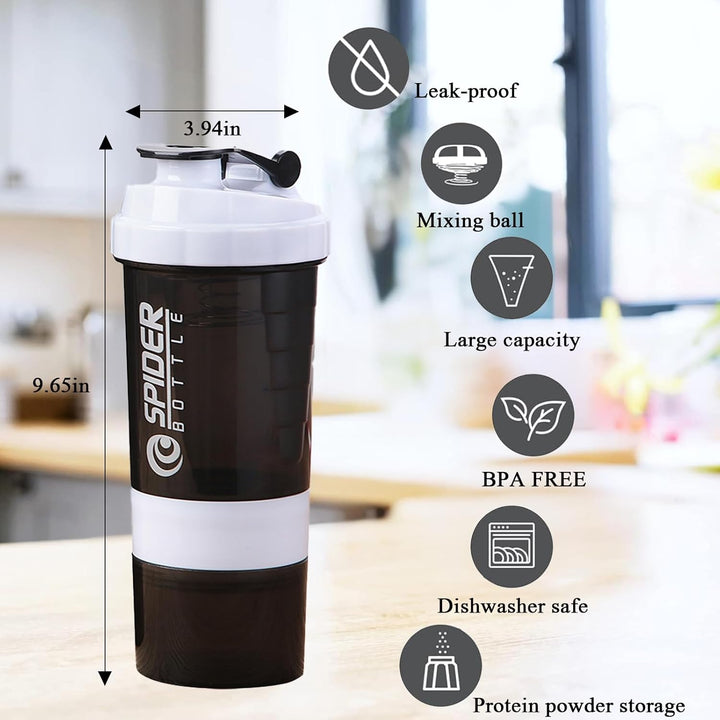 - 【3-in-1 Protein Shaker Bottle】- This protein shake bottle doubles as a protein shaker and includes separate compartments for powder and pills. The stainless steel mixer ensures efficient mixing without clumping or residue at the bottom, outperforming traditional shaker balls.