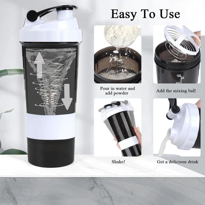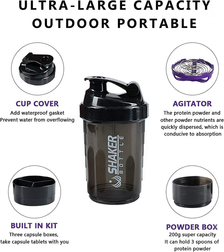 - 【Ample Capacity & Compartments】- With a 16oz capacity and three additional compartments, this protein shaker bottle is versatile for holding protein powder, vitamins, and pills. It’s the ultimate solution for convenient pre-workout and post-workout nutrition.