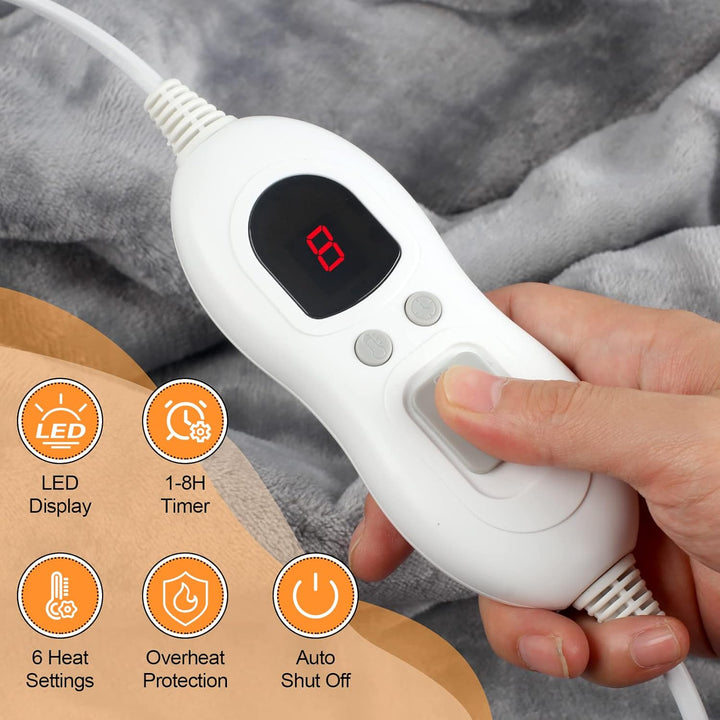 - [6 Heat Settings & 1-8H Timer] - Precise temperature adjustment system, 6 heating levels, between 28℃ and 52℃, users can set the required temperature according to their preferences. 1-8 hours timer setting, safe, energy saving, once reached the set time, the electric blanket will automatically shut down.