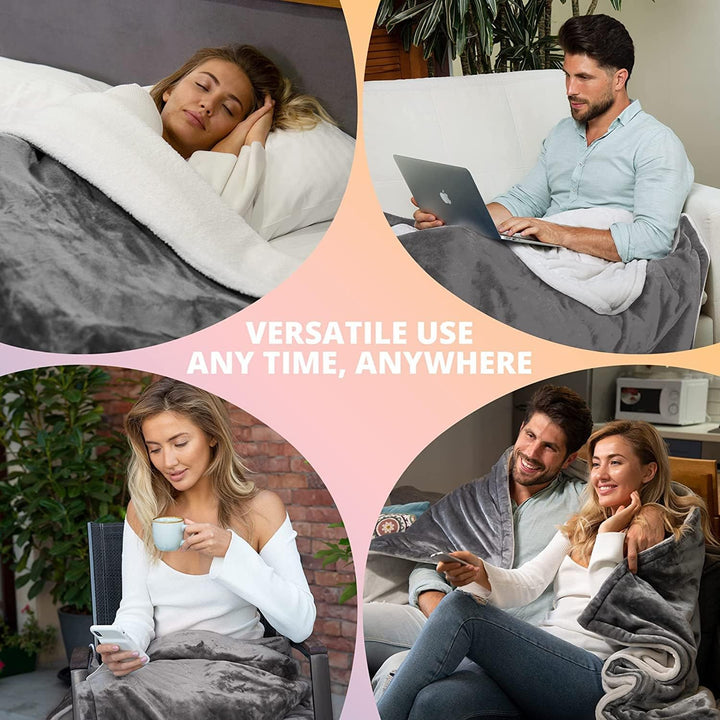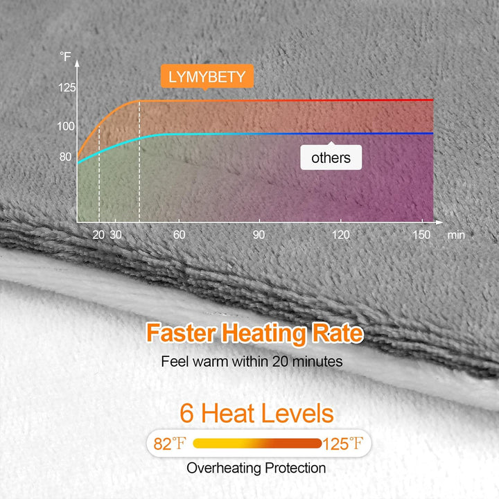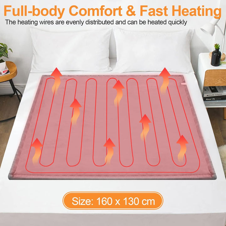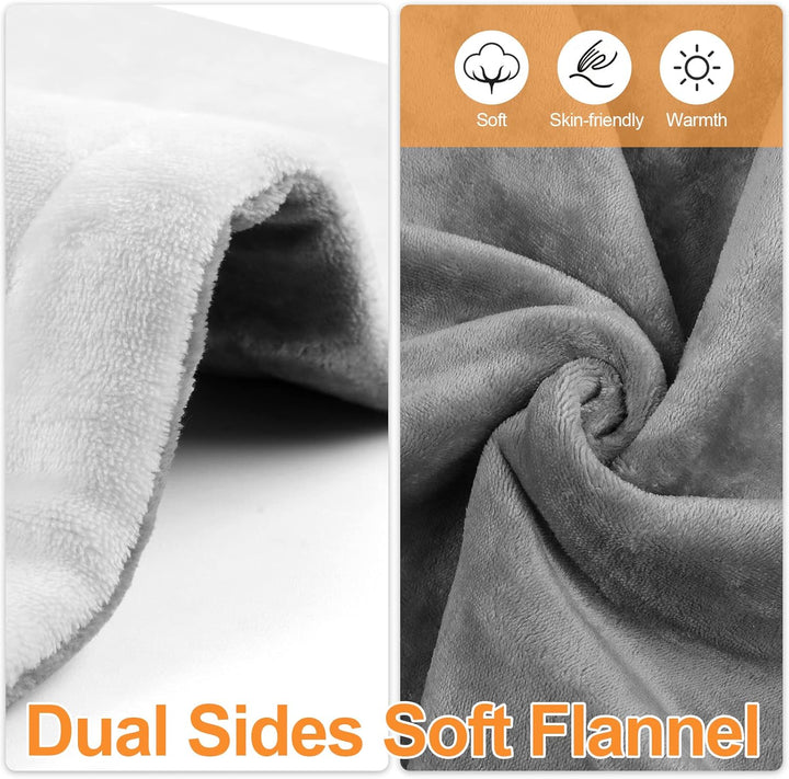 - [Super Soft Flannel] - Both sides of this heat blanket is made of flannel material, soft and skin-friendly, bringing you warmth and comfort. Measuring 160 x 130 cm, this oversized heated blanket will allow you to sleep deeply on the sofa or in bed and stay warm on cold winter nights.