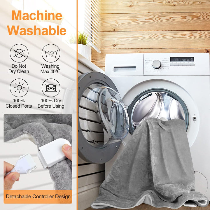 - [Machine Washable] - A detachable controller design, 100% closed ports allows this electric blanket to be washed repeatedly, ensuring the heat blanket stays clean. After cleaning, be sure to let dry before using.