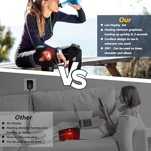 • Cordless and Portable: The cordless heating knee massager is wireless and portable, and is equipped with a clear and easy-to-use LED screen. It is perfect for use anywhere, even walking will not affect its use. You can use it to relieve pain during work, sleep or housework.