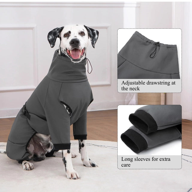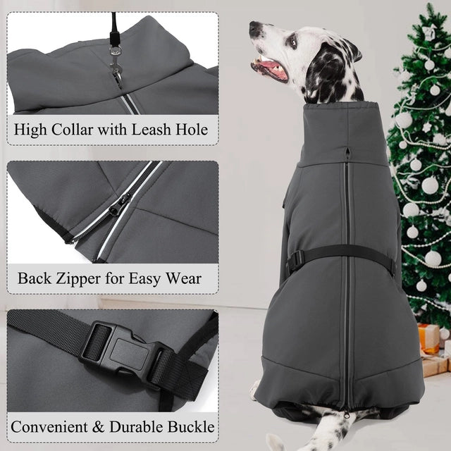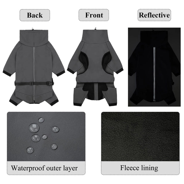 • Waterproof Dog Coat with Legs : This dog coat features a waterproof outer layer paired with a cozy fleece lining, ensuring your furry friend stays dry and warm during rainy or snowy conditions. The upgraded leg design adds extra protection, making this winter essential perfect for dogs who love outdoor adventures.