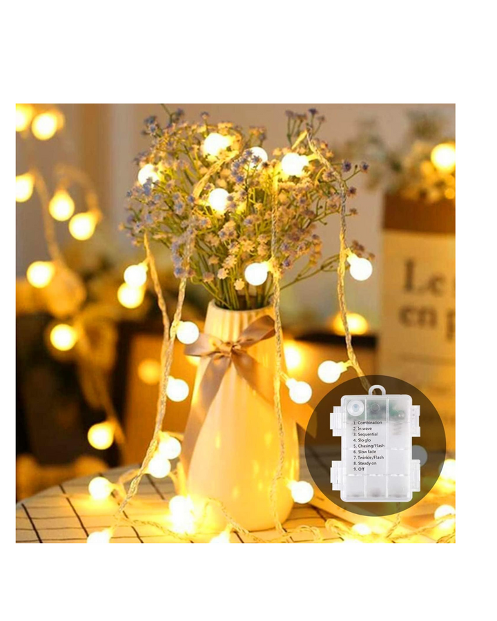 - Battery fairy lights indoor outdoor warm white bulbs in delicate frosted, fantastic lights and really bright.Bring you a dreamy decorative scene. String Lights Battery Operated needs use 3 x AA size (not included).The safety factor of the bulb fairy lights controlled by the battery is higher than that of the direct plug-in power supply.