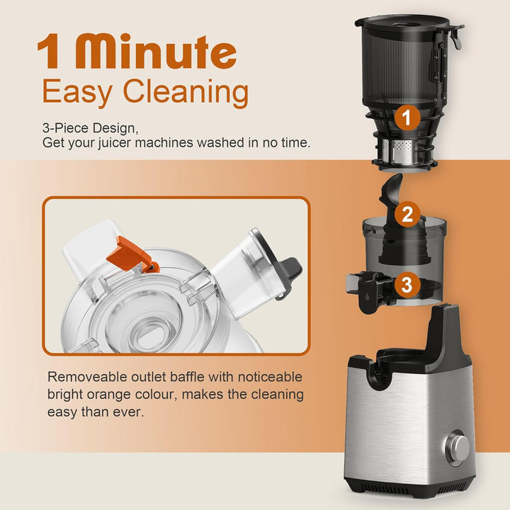 Introducing Fretta Cold Press Juicer Machines, the stainless steel masticating slow juicer with a powerful 250W motor and 140MM feed chute. Extract juices from whole fruits and vegetables with ease, thanks to the self-feeding design. Enjoy nutrient-rich, BPA-free juices and effortless cleanup.