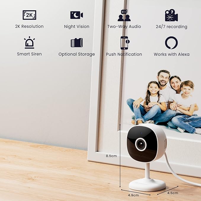 The GALAYOU Security Camera Indoor (G7-2P) offers 2K resolution for clear, detailed monitoring of your home environment. Designed for versatile use as a baby monitor, pet camera, or smart CCTV, it features WiFi connectivity for seamless remote access. Equipped with alert notifications and a siren, it enhances home security by promptly notifying you of unusual activity. The camera supports TF card storage for local video recording and integrates smoothly with Alexa for convenient voice control, making it a reliable and intelligent choice for comprehensive indoor surveillance.