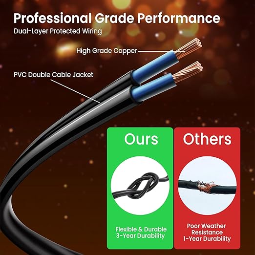 - 【Easy Setup & Versatile Decor for Any Occasion】From wedding receptions to Christmas markets, these festoon lights add instant charm. The plug-and-play design means no complicated installation—just hang them up and enjoy. Durable wiring ensures they stay tangle-free, whether draped over a pergola, fence, or party marquee.