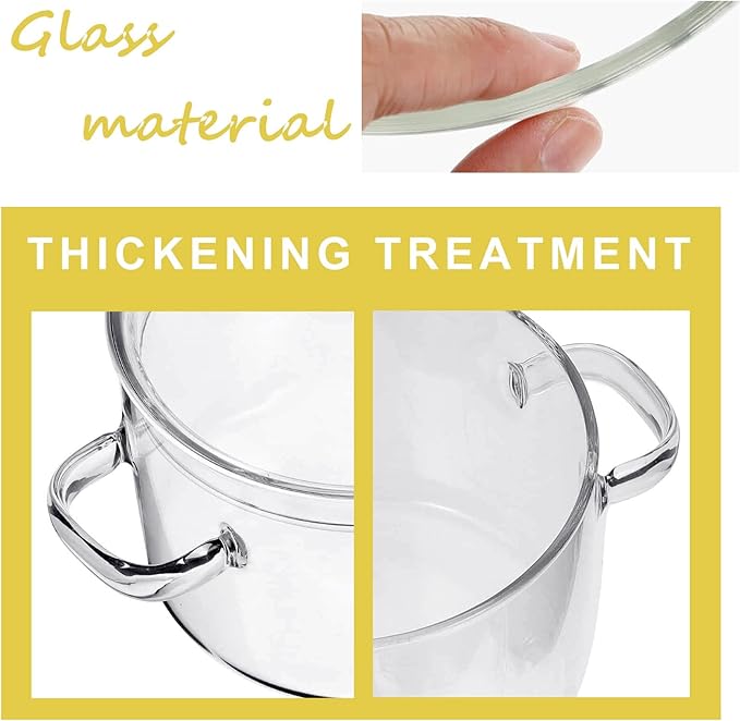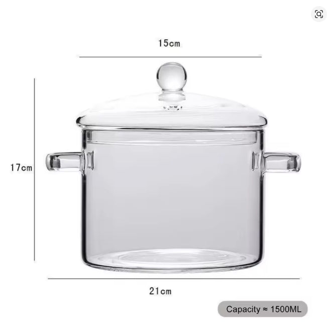 These heat-resistant glass pots with covers are designed for versatile stovetop cooking. Available in 1500ml and 1900ml sizes, they are ideal for simmering pasta, noodles, soups, milk, and baby food. The clear glass allows you to monitor cooking progress easily, while the durable construction ensures safe and even heat distribution. Perfect for those seeking reliable, transparent cookware that combines functionality with ease of use.
