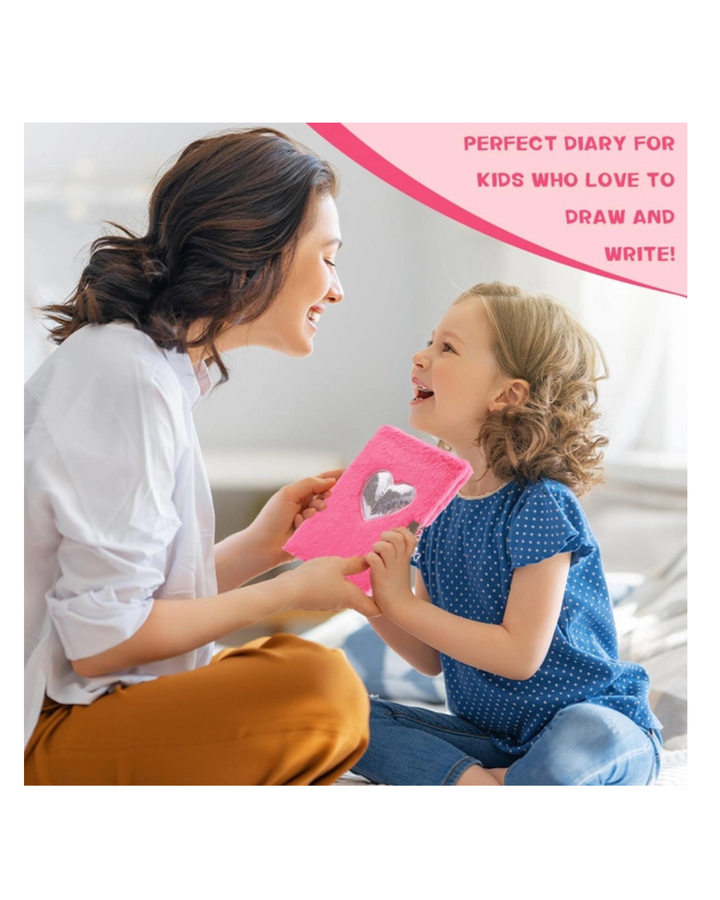 - Designed diary for girls aged 6-8 years old, plush design with unique heart shaped glitter, pink and sparkling hearts are very cute, the cover is made of high-quality plush material and filled with skin-friendly PP cotton, which has passed the children's product safety test