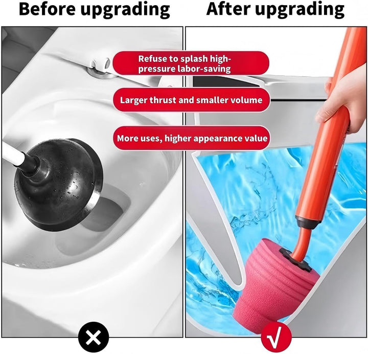 The High Pressure Toilet Plunger Set is a professional-grade plumbing tool designed to clear stubborn clogs in toilets, sinks, and bathtubs efficiently. Featuring an ergonomic handle, it provides a comfortable grip for precise control and maximum force application. Utilizing high-pressure air technology, this plunger effectively dislodges blockages without harsh chemicals, making it a reliable and eco-friendly solution for maintaining clear drains. Ideal for both household and professional use, it ensures quick and thorough unclogging to restore proper drainage.