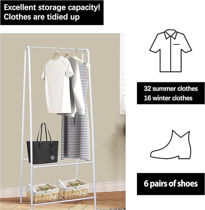 - 【Material and Size】The clothes rack is made of metal and measures 150x35x59cm.