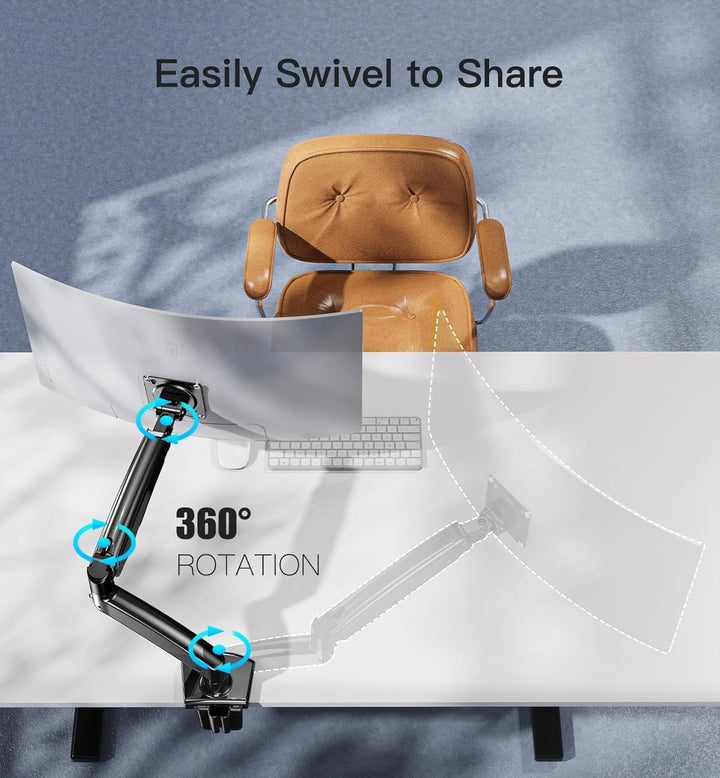 - Long Arm Extension for Flexible Viewing: The monitor arm can extend up to 25.9 inches, allowing you to easily adjust the distance between your monitor and eyes, providing ultimate flexibility for a personalized viewing experience.