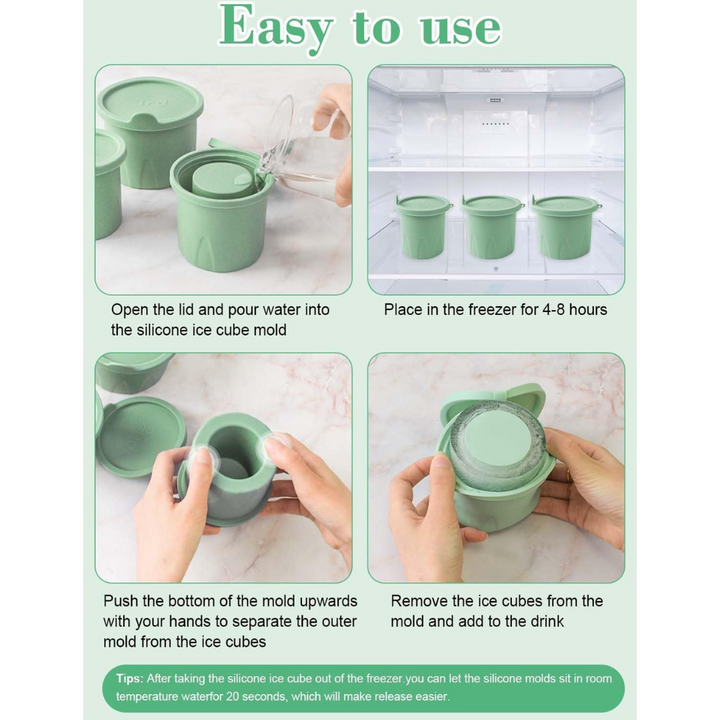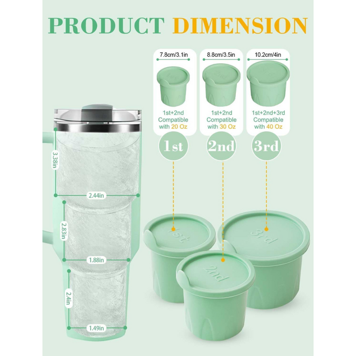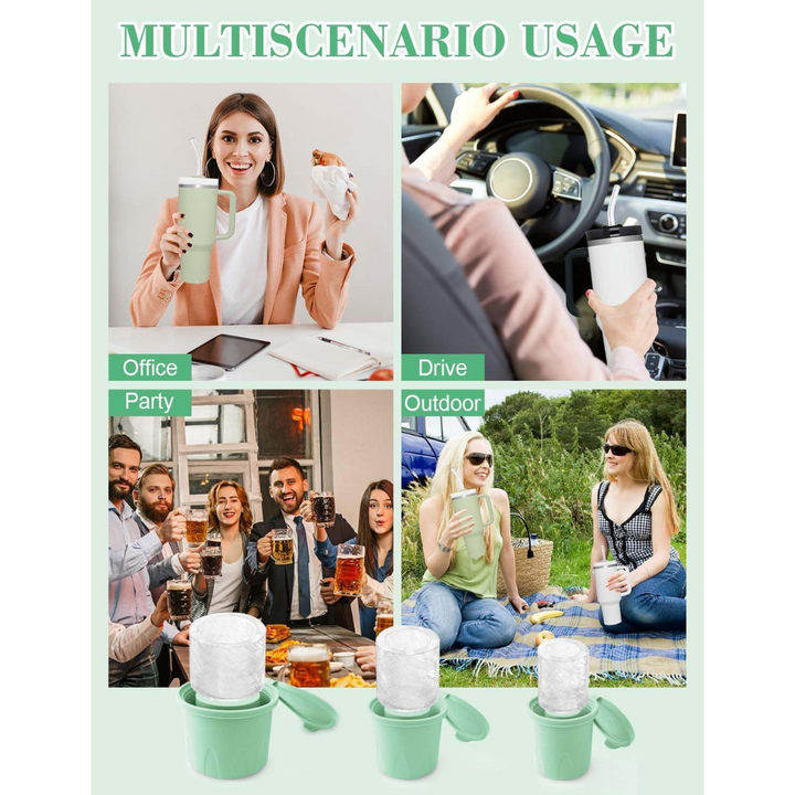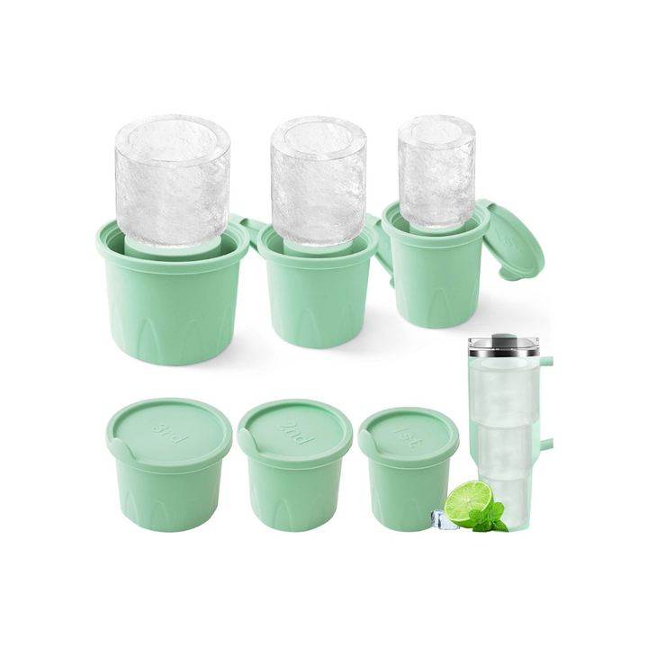 This set of three silicone hollow cylinder ice cube trays is designed to perfectly fit 20oz to 40oz tumblers, including Stanley cups. Each mold comes with a secure lid to prevent spills and freezer odors, ensuring clean, clear ice cubes ideal for whiskey, cocktails, coffee, juice, and other beverages. The flexible silicone material allows easy ice removal without cracking, enhancing your drink experience with slow-melting, large ice cubes that keep beverages chilled longer without dilution. A practical accessory for anyone seeking precision and quality in their drink preparation.